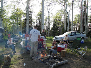 The crew with the neighbors tent trailer. We love taking it out every summer.